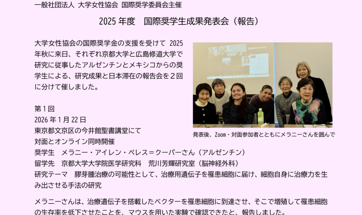 2025年度国際奨学生成果発表会の報告